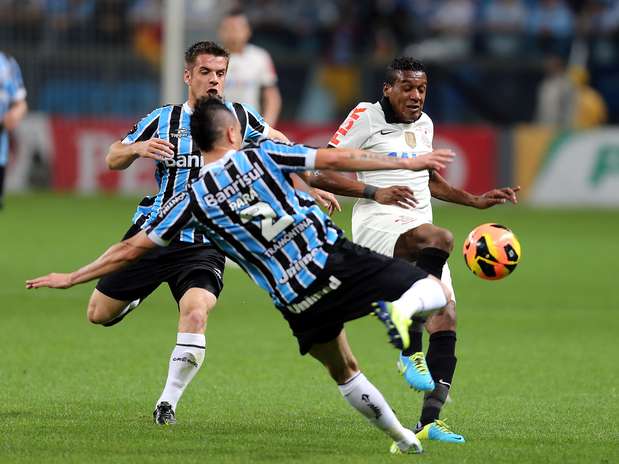 A maioria das jogadas gremistas era pela porção direita do campo – esquerda corintiana -, mas os lances de perigo caíram ao longo da etapa inicial. Já os paulistas, dominados, buscavam acertar um contra-ataque, mas Romarinho errava as principais subidas alvinegras. Com a intensidade controlada na primeira metade, a etapa inicial se desenrolou sem grandes emoções até o fim, apesar do contínuo domínio da equipe tricolor.